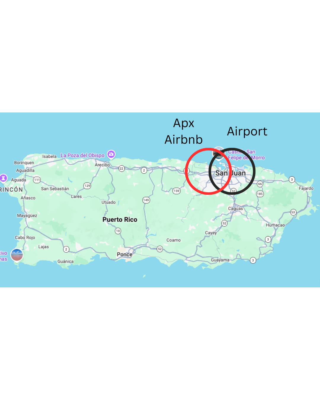 | Puerto Rico | – ISLAND time – Literally on the beach – Cheaper home options – Comparable in price to Michigan | – Long haul flight (13hrs) + layover from SFO | Airfare ~500 House ~200 Misc ~200 Total ~900 |